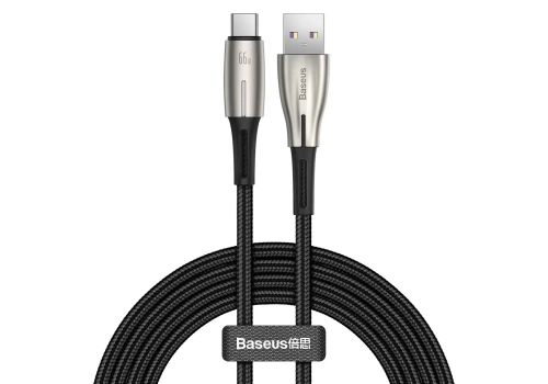 Кабель Baseus Water Drop-shaped Lamp SuperCharge Cable USB to Type-C 66W 1m, Чёрный (CATSD-M01)