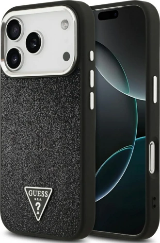 Накладка Guess для iPhone 17 Pro Fixed Glitters Tringle metal logo & Camera (MagSafe), Hard Black (GUHMP17LPFGTSCMK)