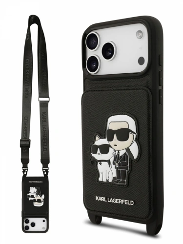 Накладка Lagerfeld для iPhone 17 Pro Max Crossbody cardslot PU Saffiano NFT Karl&Choupette Hard, Чёрная (KLHCP17XCSAKCPMK)