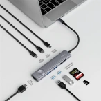 Хаб Metal Gleam Series 7-in-1 Multifunctional Type-C HUB Docking Station 2хUSB3.0, 2хType-C, HDMI, SD, TF, Серый (WKWG020113)