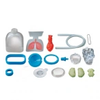 Легкие, череп, части мозга, пакет с легкими, Внешний и внутренний корпус проектора, Полоска для измерения скорости реакции, Диафрагма и синий диск, Прозрачная пластиковая воронка, Пластиковая колба для легких